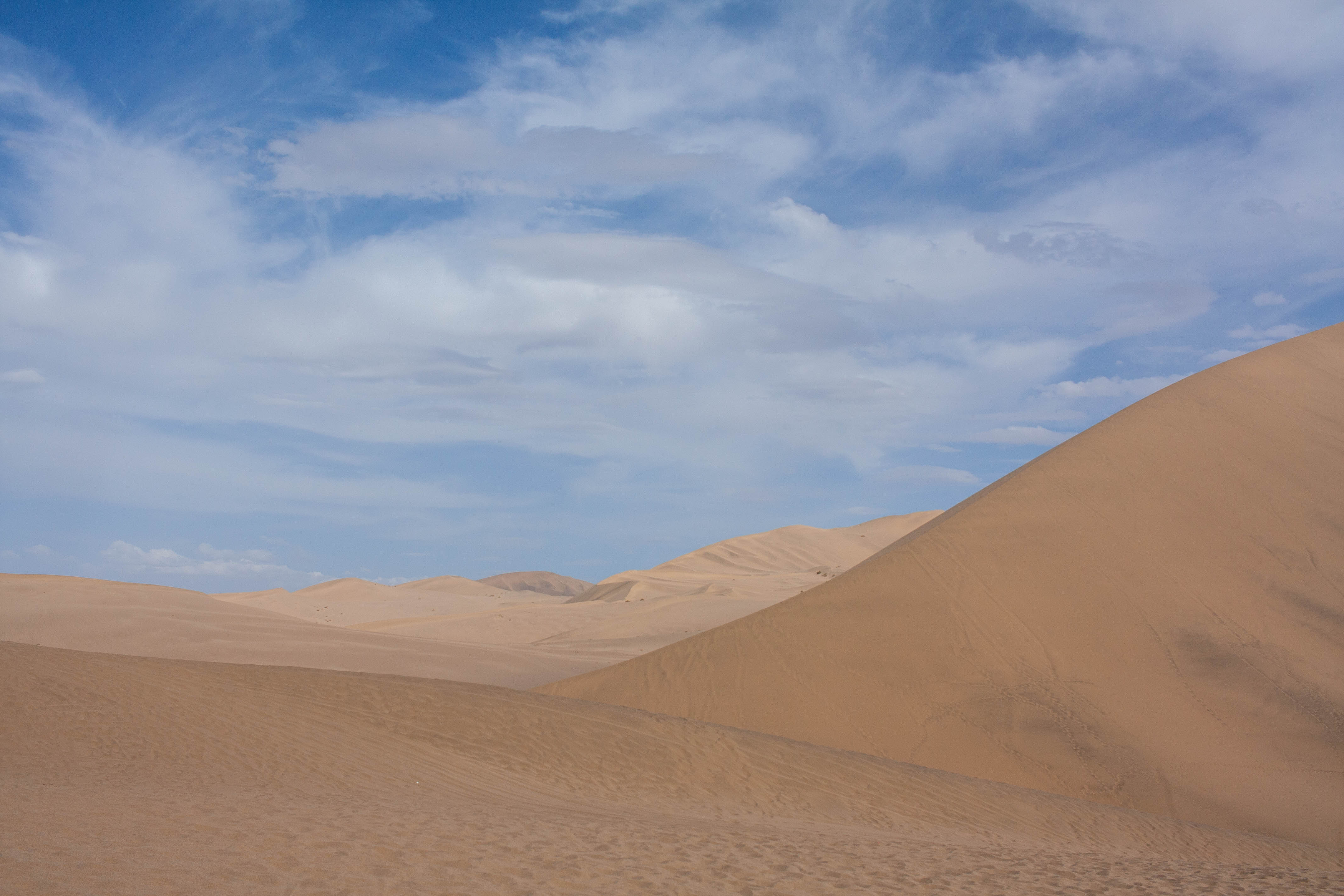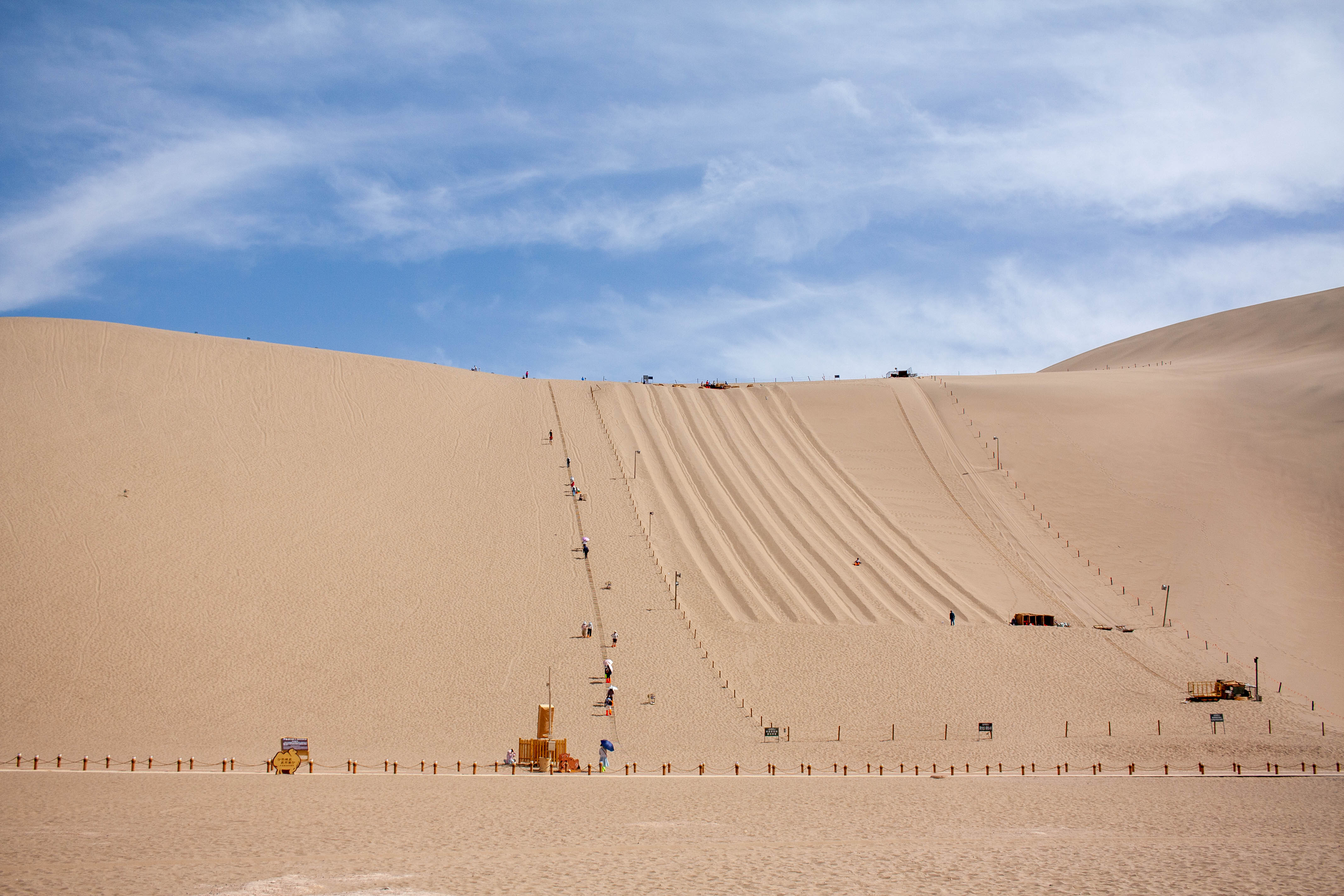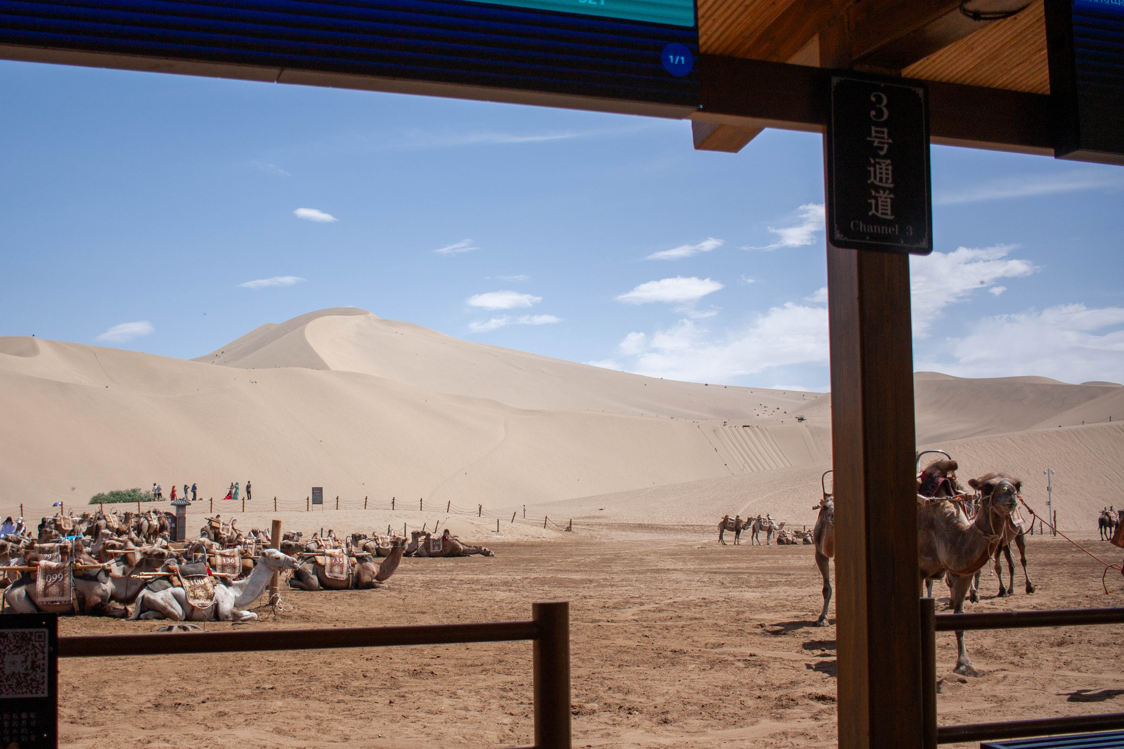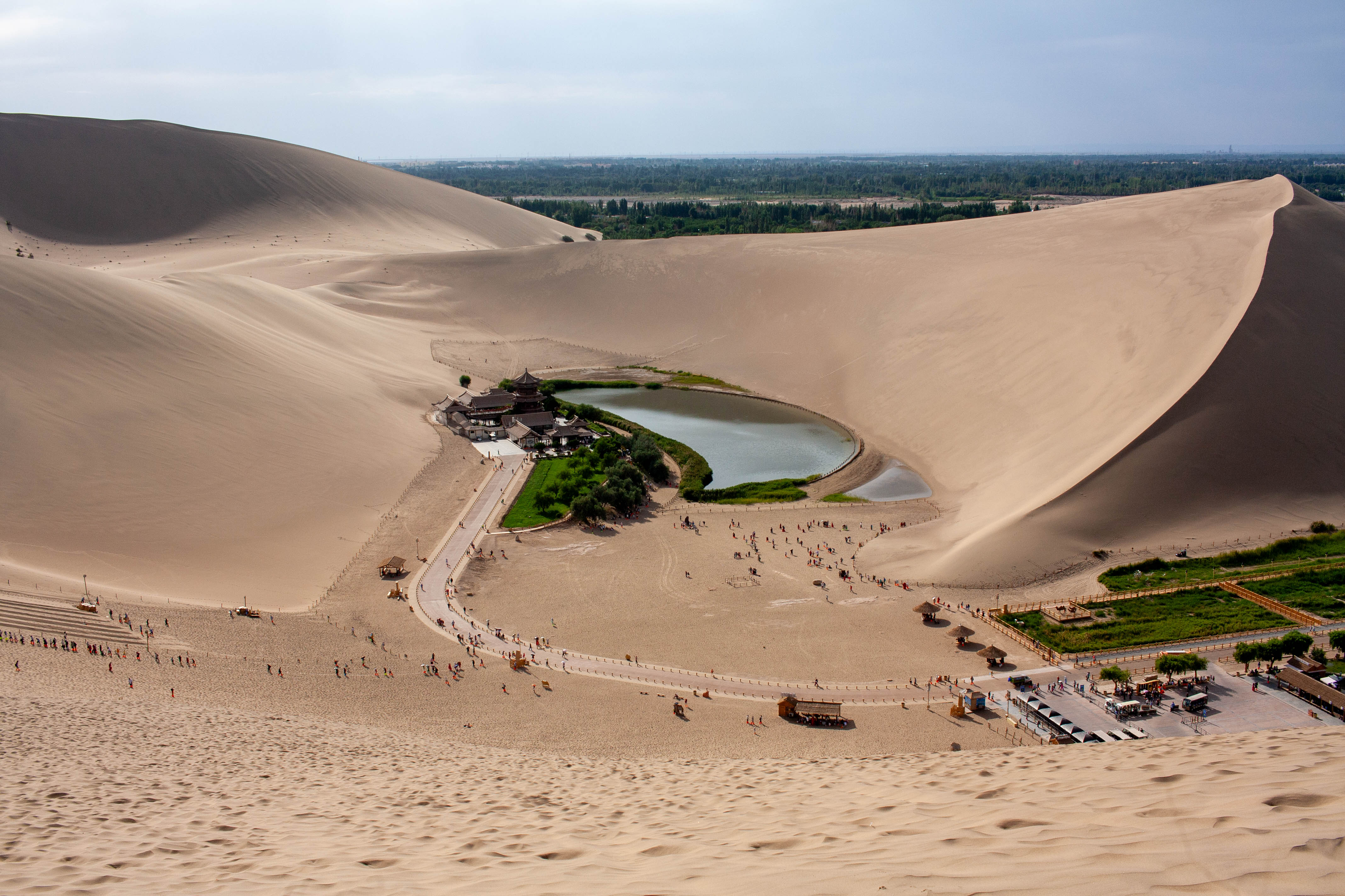 景区主要由月牙泉以及围绕它的几座沙山构成,但是直到爬上山顶才知道后方是一望无际的沙海。