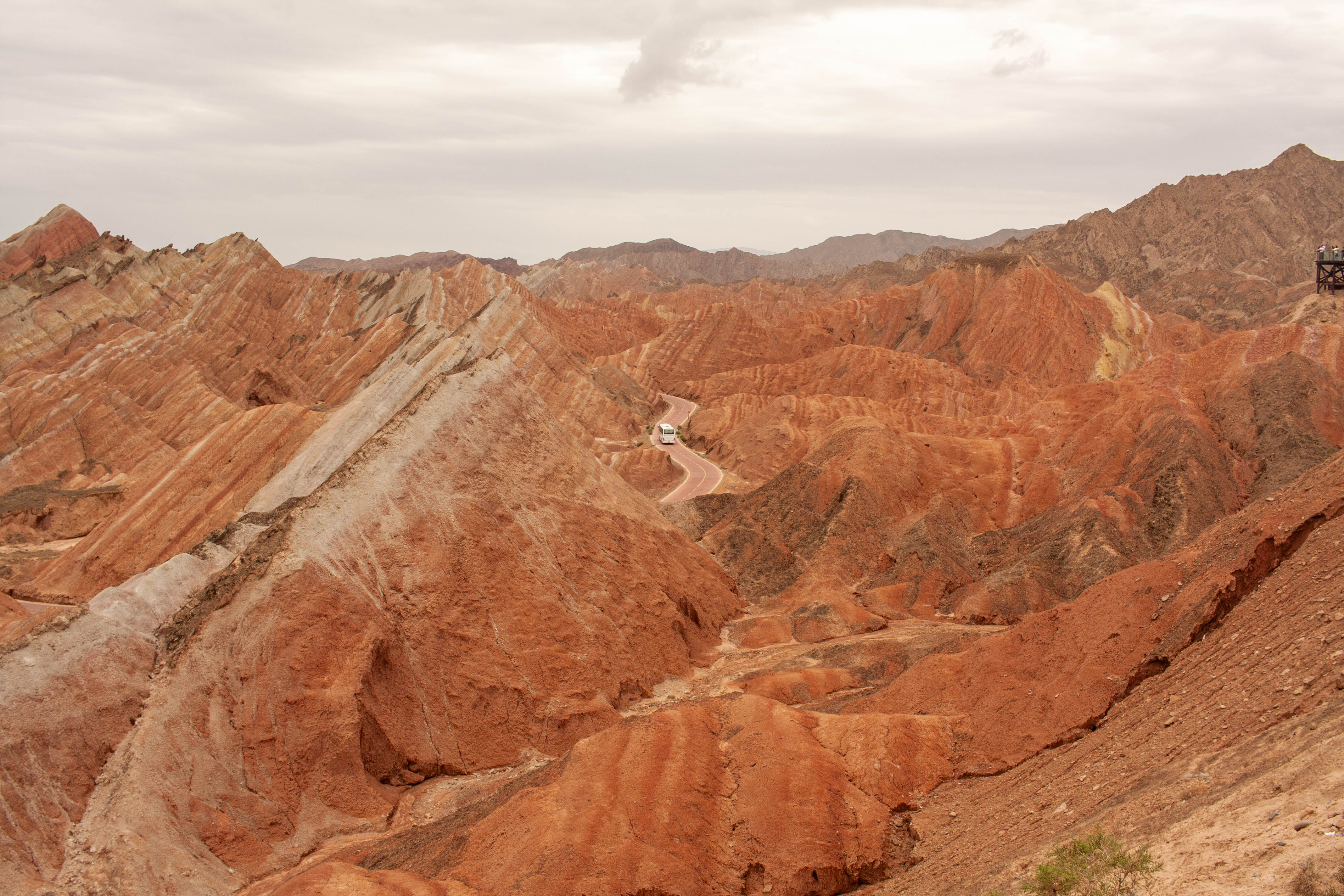 依旧是阴雨天,但是丹霞地貌的颜色反而显得更鲜艳了。