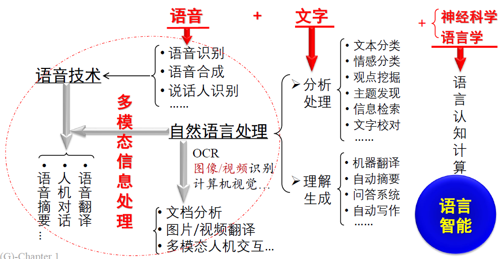 自然语言处理是研究如何利用计算机技术对语言文本(句子、篇章或话语等)进行处理和加工的一门学科,研究内容包括对词法、句法、语义和语用等信息的识别、分类、提取、转换和生成等各种处理方法和实现技术。(宗成庆,黄昌宁)