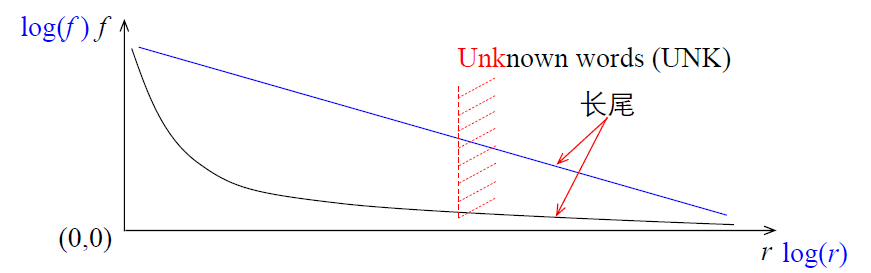 从统计结果看,少数高频词占了整个语料规模的大部分比例,而大部分词汇属于低频词 。 这种现象通常被称为长尾效应 (long tail effect), 相应的词汇称为长尾词