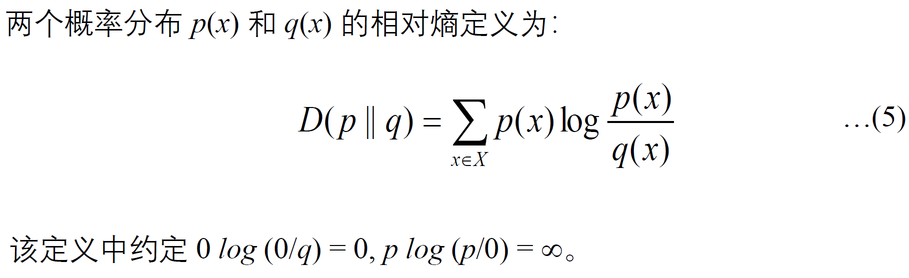 相对熵常被用以衡量两个随机分布的差距。当两个随机分布相同时, 其相对熵为