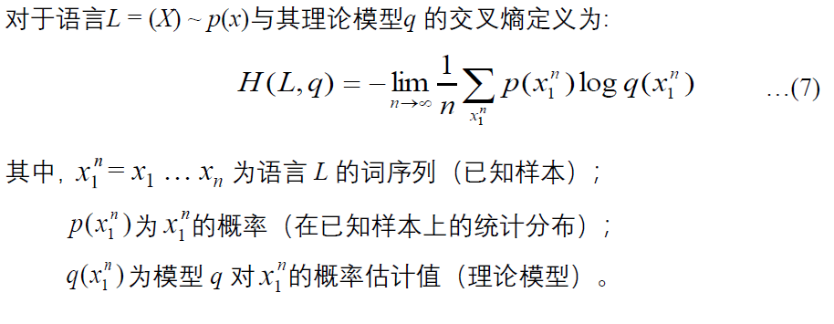 由此,我们可以根据模型 q 和一个含有大量数据的 L 的样本来计算交叉熵。在设计模型 q 时,我们的目的是使交叉熵最小,从而使模型最接近真实的概率分布