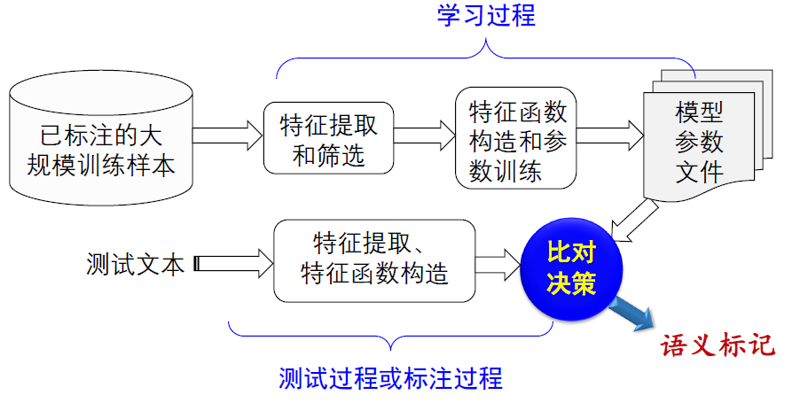 利用大规真实语言数据,借助人的帮助(标注数据和筛选特征等),统计发现语言使用的规律及其可能性(概率)大小,以此为依据计算预测测试样本的可能结果。统计单元是离散事件(词、短语、词性等 )。