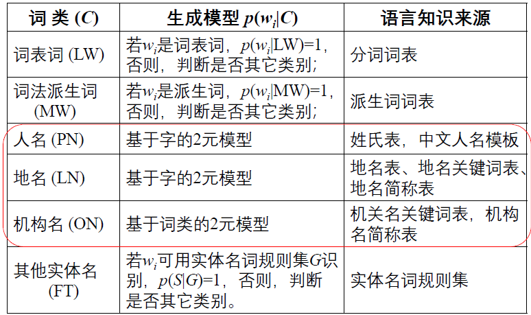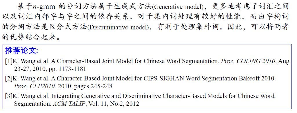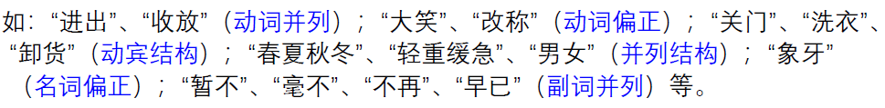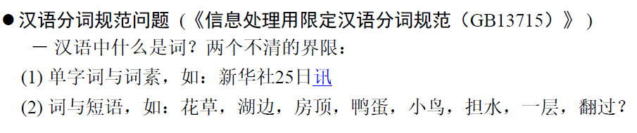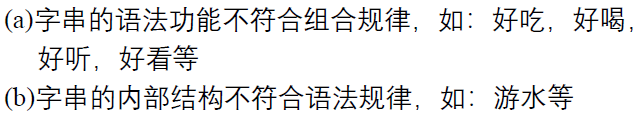 - 语类无法由组合成分直接得到的字串应该合并为一个分词单位。