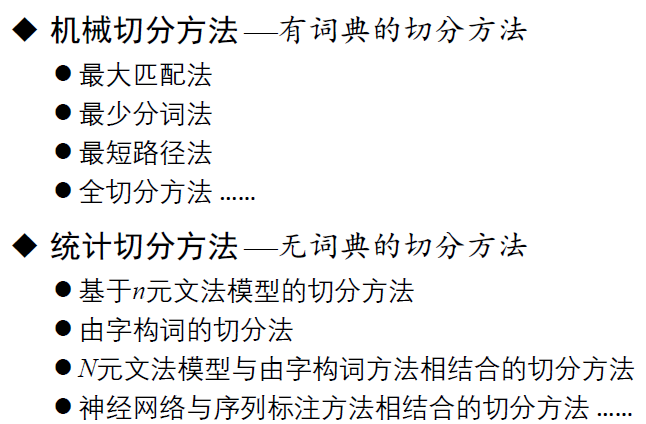 - 词语切分在传统的 NLP 方法中是句子结构分析、语义分析和篇章分析等后续任务完成的前提和基础;