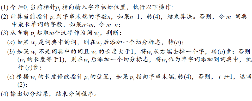 - 逆向最大匹配算法 (Backward MM,BMM)