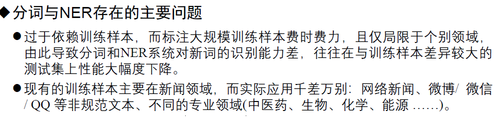领域差异和生词识别是分词和 NER 面临的最大挑战