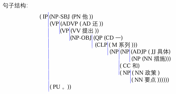 例如,给定如下句子:他还提出一系列具体措施的政策要点。