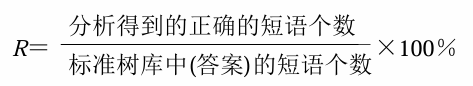 召回率 (recall):句法分析结果中正确的短语个数占标准分析树中全部短语个数的比例,即: