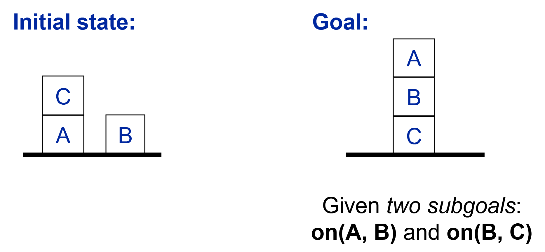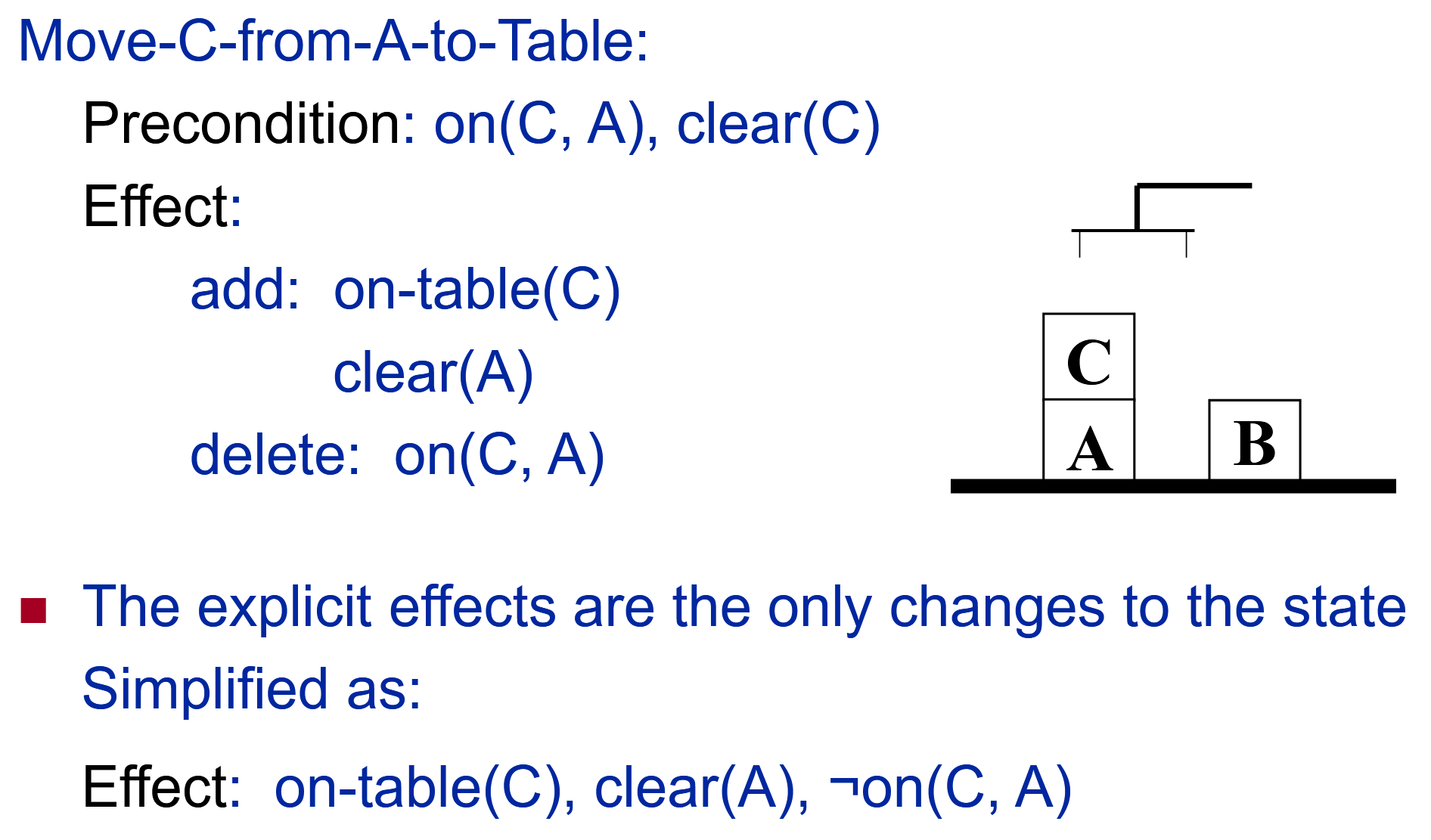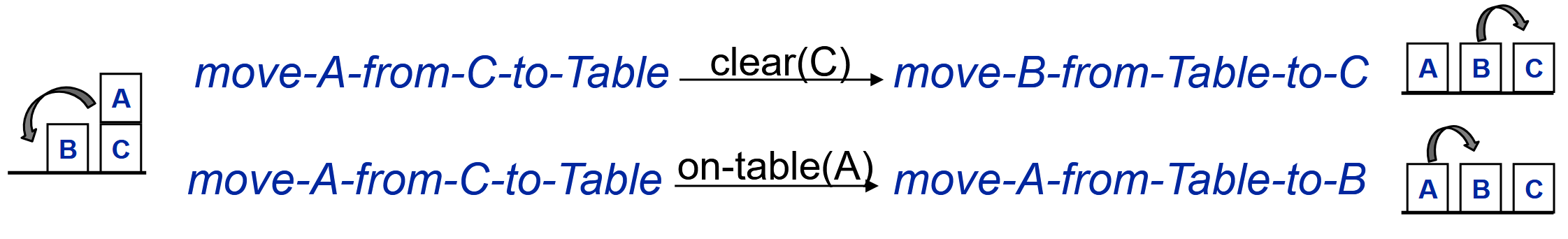 Initial State: on(C,A), clear(C), on-table(A), on-table(B),clear(B)