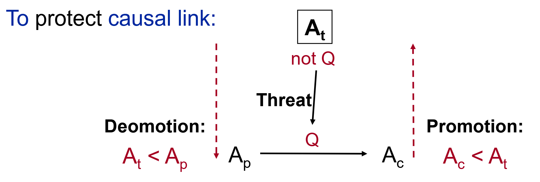 (子) 目标:把 (Q,Aneed) 从 agenda 中移除。如果 Aadd 是新动作,则对于它的每个前置条件 P,把 (P,Aadd) 加入到 agenda 中 保护因果连接:对于