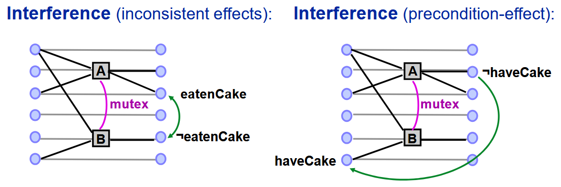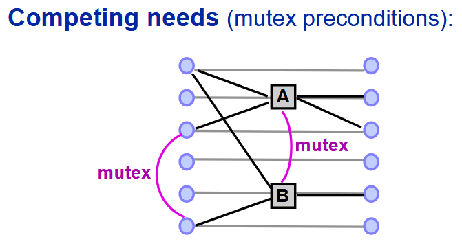 (Interference):A(或 B)会解除 B(或 A)的前提条件或效果 - 需求竞争